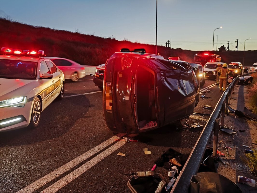 שני צעירים וילדה בת 12 נפצעו בינוני בהתהפכות רכב באזור הרצליה