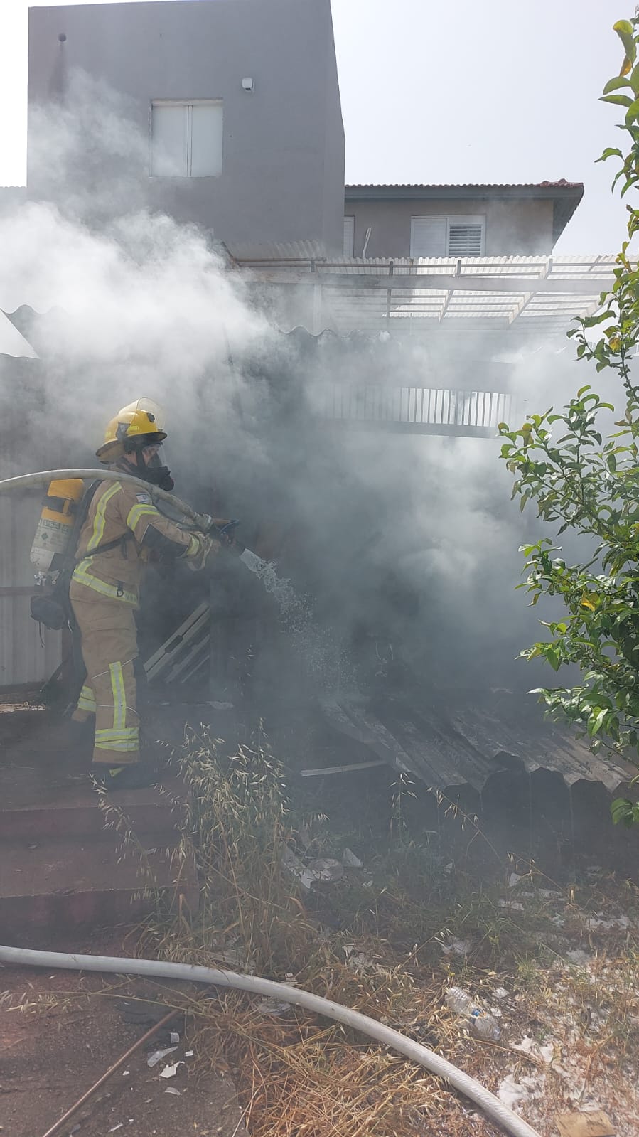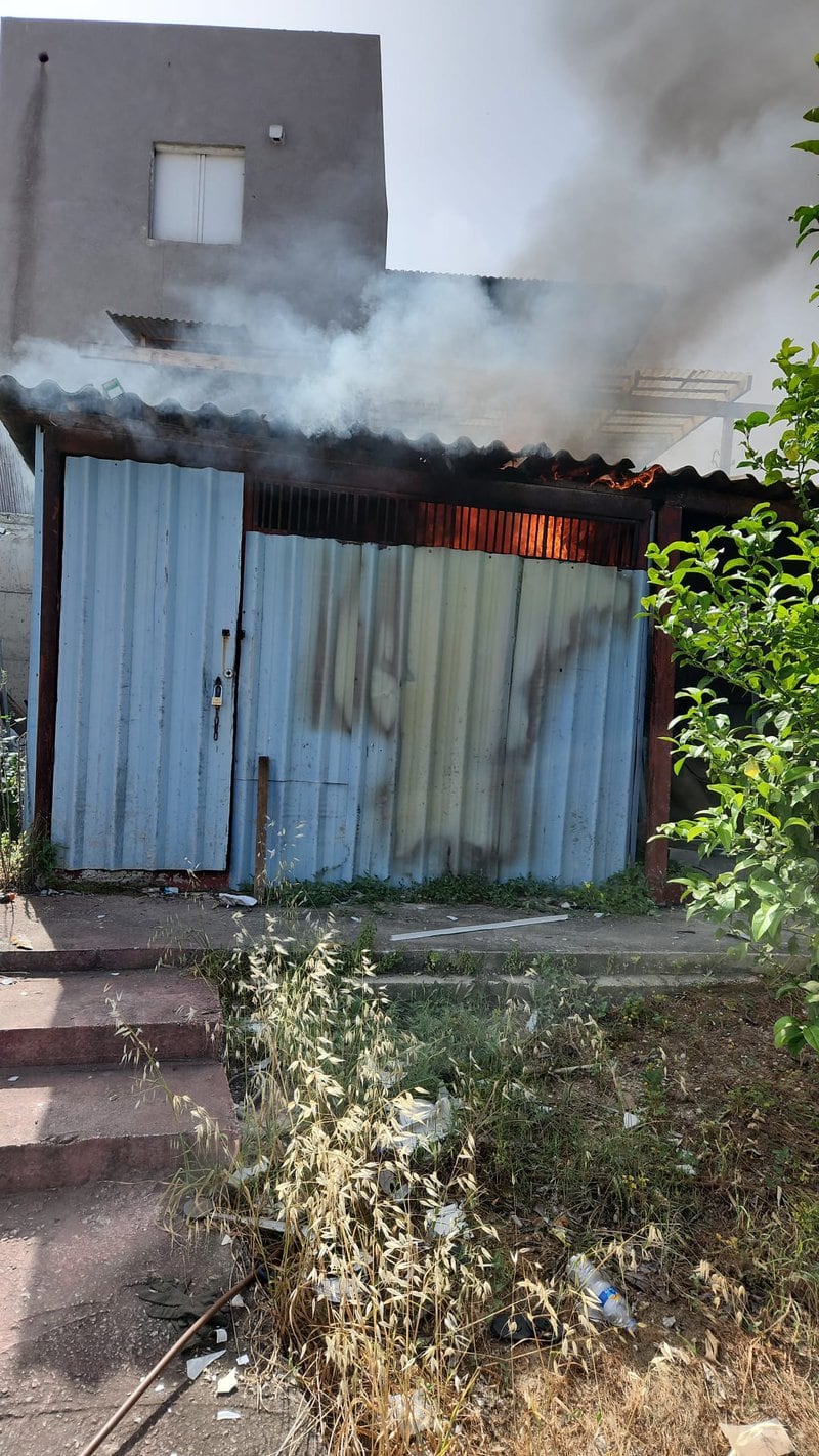 רסיס רקטה פגע במחסן של בית בשדרות, שריפה פרצה במקום