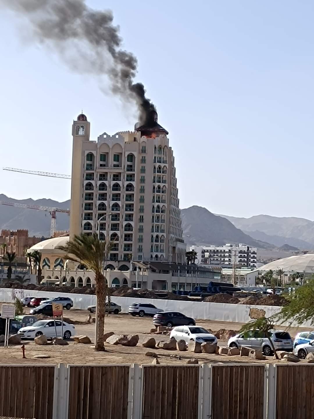 שריפה פרצה במלון הרודס באילת, צוותי כיבוי פועלים במקום