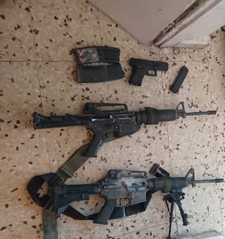 בנוסף, הכוחות איתרו במרחב שלושה נשקים מסוג 'M-16', אקדח מספר מחסניות ששימשו את המחבלים ורכב בו מספר מטענים.