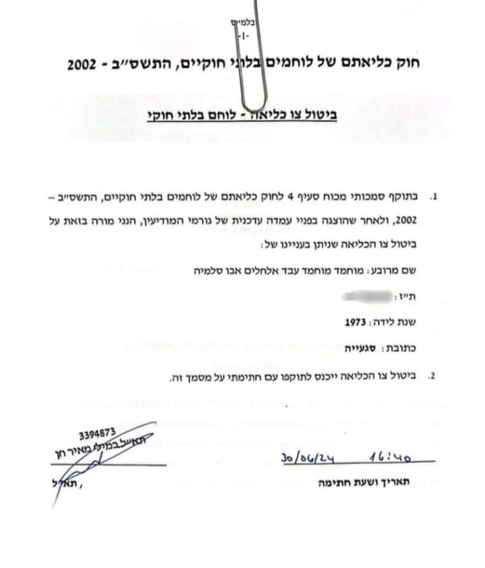 לצערנו בשל פרסומים שקריים, אנו נאלצים לחשוף את צו השחרור של מנהל בית החולים בשיפא.