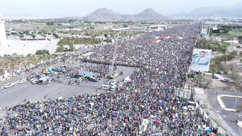 למעלה ממיליון בני אדם השתתפו היום (שישי) בצנעא, בירת תימן, בהפגנה תחת הכותרת "ניצחון לעזה… מתקדמים לשלב החמישי בהסלמה". המפגינים הביעו את תמיכתם במנהיגי המהפכה וקראו לנקוט בכל אמצעי ההסלמה האפשריים כדי "להרתיע את ישראל ולהגיב על התקפותיה באזור אל-חודיידה והמשך פשעיה ברצועת עזה."