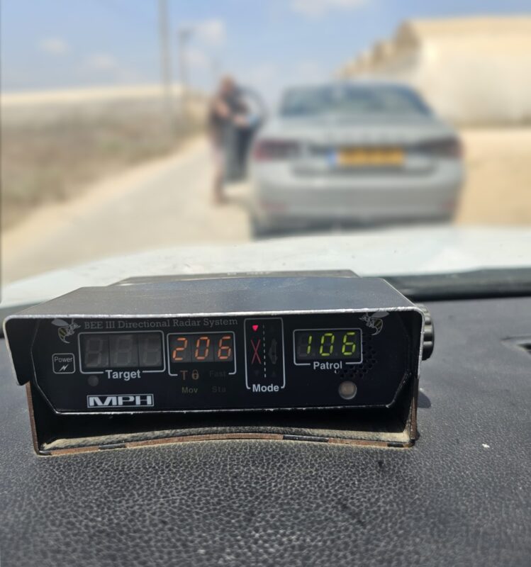 במהלך פעילות של שוטרי משטרת התנועה הארצית בגזרת נגב בכביש 293 סמוך לצומת בית הגדי כנגד עבירות הגורמות לתאונות דרכים, נקלט היום (ראשון) במכשיר למדידת מהירות, רכב הנע במהירות מופרזת של 206 קמ"ש במקום בו המהירות המותרת היא 80 קמ"ש. הנהג, בן 18 תושב מושב אשבול, נחקר ונשלח למעצר בית ובכוונת התביעה המשטרתית להגיש נגדו כתב אישום. כמו כן, רישיון הנהיגה שלו נפסל ל-30 ימים.