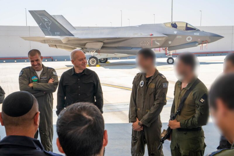 שר הביטחון יואב גלנט ביקר הבוקר (ראשון) בבסיס חיל האוויר בנבטים ושוחח עם טייסים, אנשי צוות אוויר וטכנאים המשתתפים בלחימה בכל הגזרות. מפקד הבסיס, תא״ל יותם סיגלר פרט בפני השר את הפעילות המבצעית במהלך הימים האחרונים ועמד על היערכות הטייסות להמשך הפעילות בהגנה וחיזוק המוכנות לאפשרויות פעולה התקפיות.
