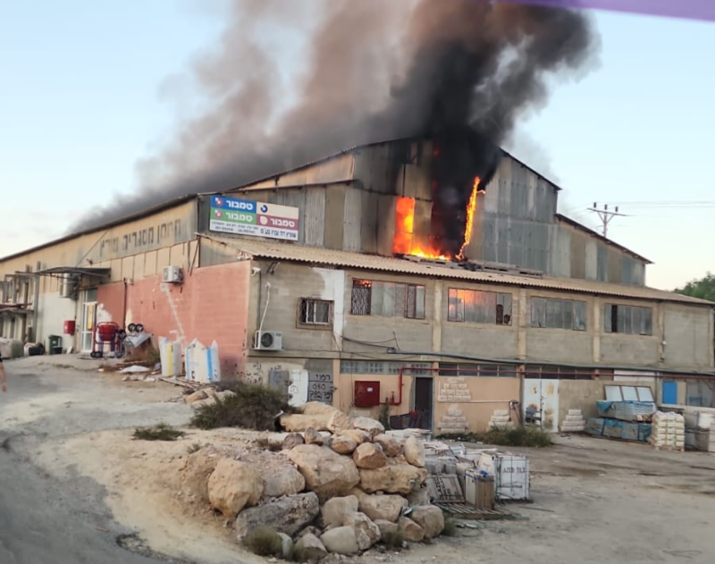 שריפה במבנה תעשייה של חומרי בניין בערד, אין נפגעים